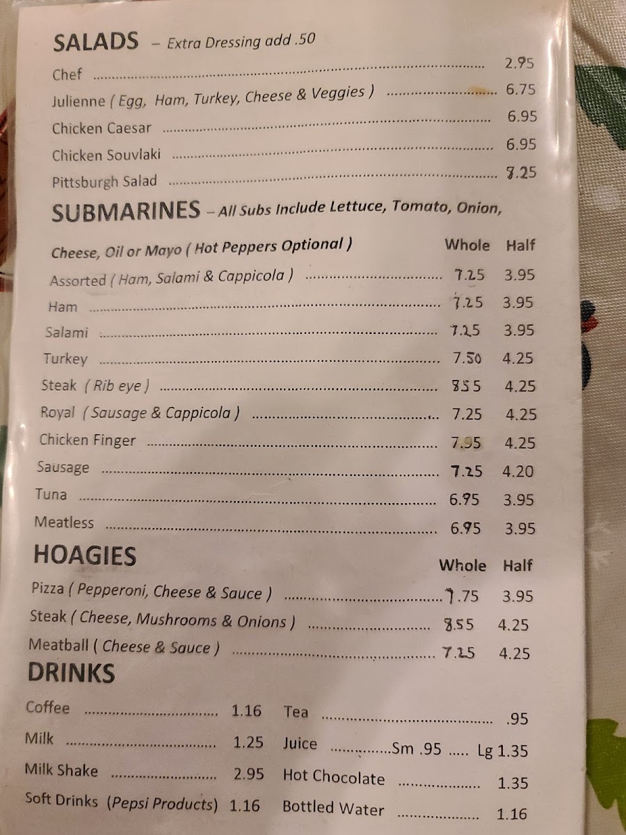 As lunch rolls around, treat yourself to a classic BLT for just $4.25 or sink your teeth into a savory Steak Sub at $7.25. The Tuna Sub and Pizza Hoagie, both priced at $6.25, also promise to satisfy your cravings. And let’s not forget the Pittsburgh Salad, a delightful blend of flavors that will leave you wanting more!